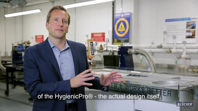 HygienicClean™ is a new hygienic channel and grating washer for the drainage system. It offers the food and beverage industry both time and water savings by cleaning the channel and grating at the same time.
